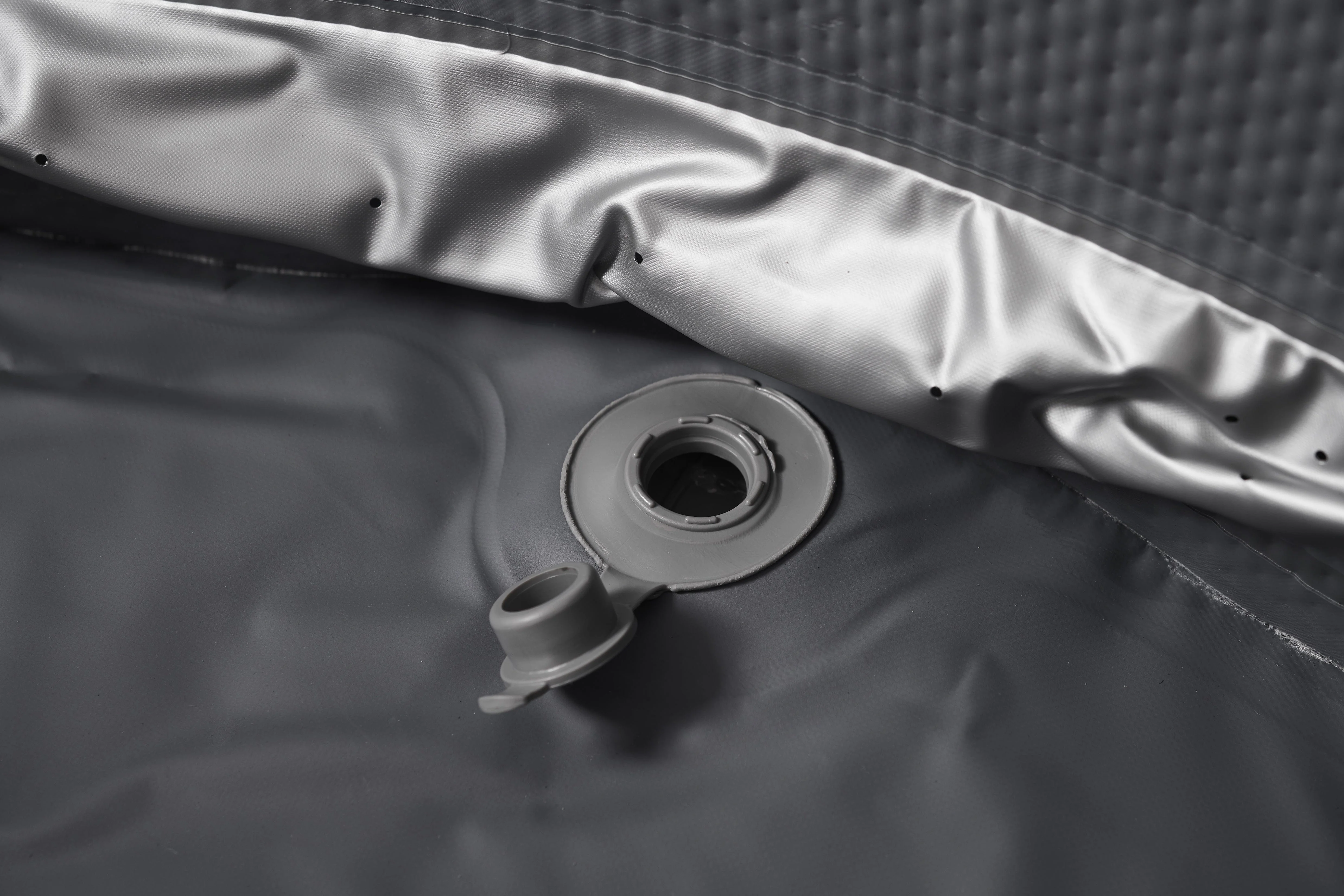 Air Jet (bubbling massage system) utilizes a “massage seam” which is an extra air pocket that encircles the bottom of the spa. This will not inflate when the liner is inflated and instead is a material tube which includes tiny holes. When the bubble function is selected the pump pushes very high-pressure air through this tube. The air escapes through the included holes causing the air bubbling massage. All MSpa models come with Air Jet bubbling massage system.